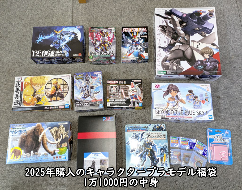 ▼昨年の1万1000円のキャラクタープラモデル福袋の中身はこうでした