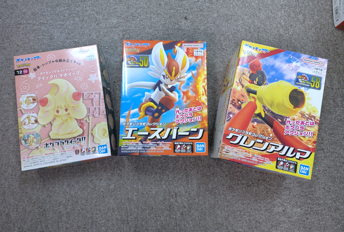 ここからポケモン3商品。ポケモンプラモコレクション「ポケプラクイック!! マホイップ」。それと同じくポケモンプラモコレクションの「エースバーン」と「グレンアルマ」。