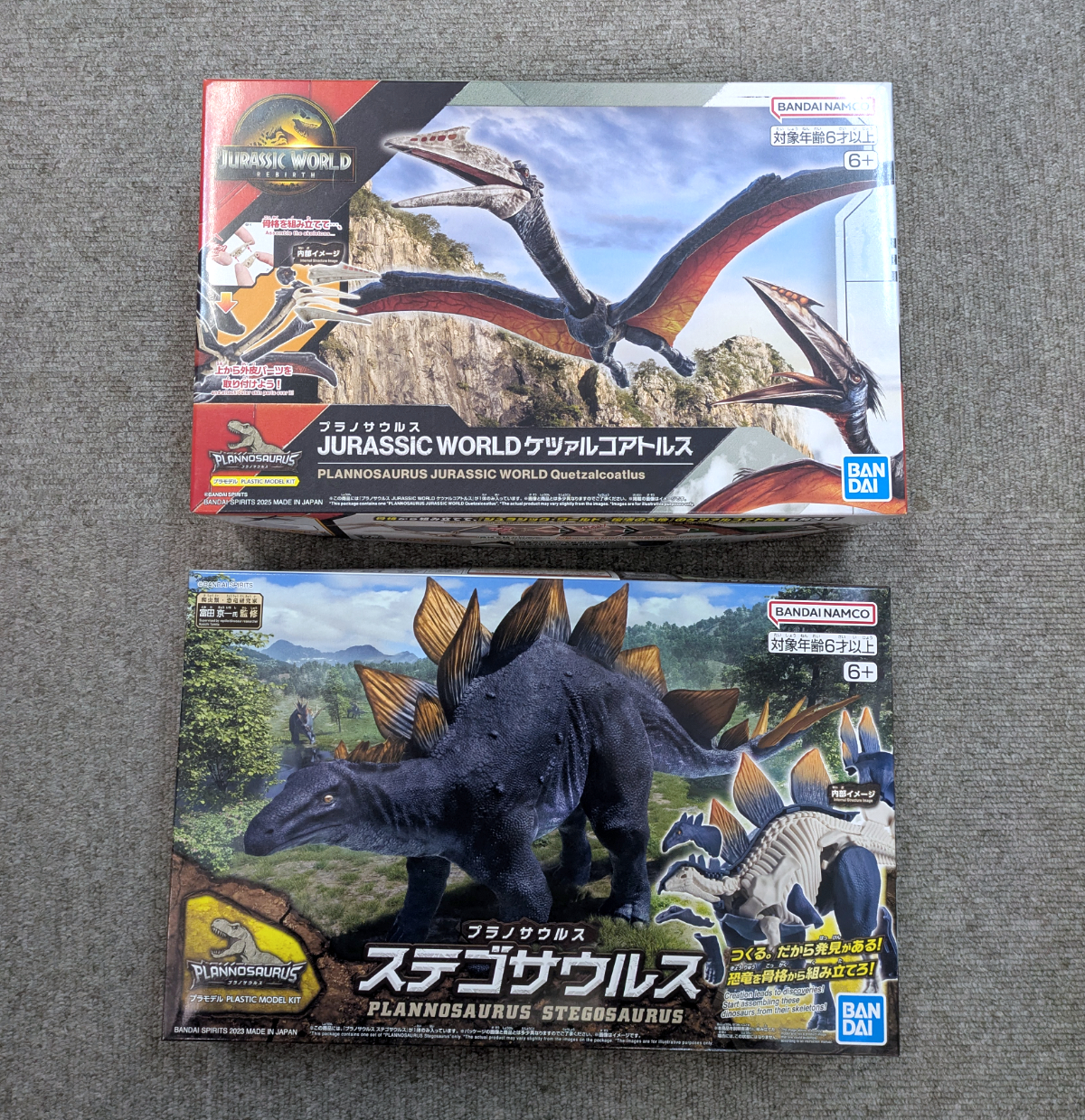 さらにプラモデルは続く。恐竜プラモシリーズ「プラノサウルス」の「ジュラシックワールド ケツァルコアトルス」と「ステゴサウルス」。