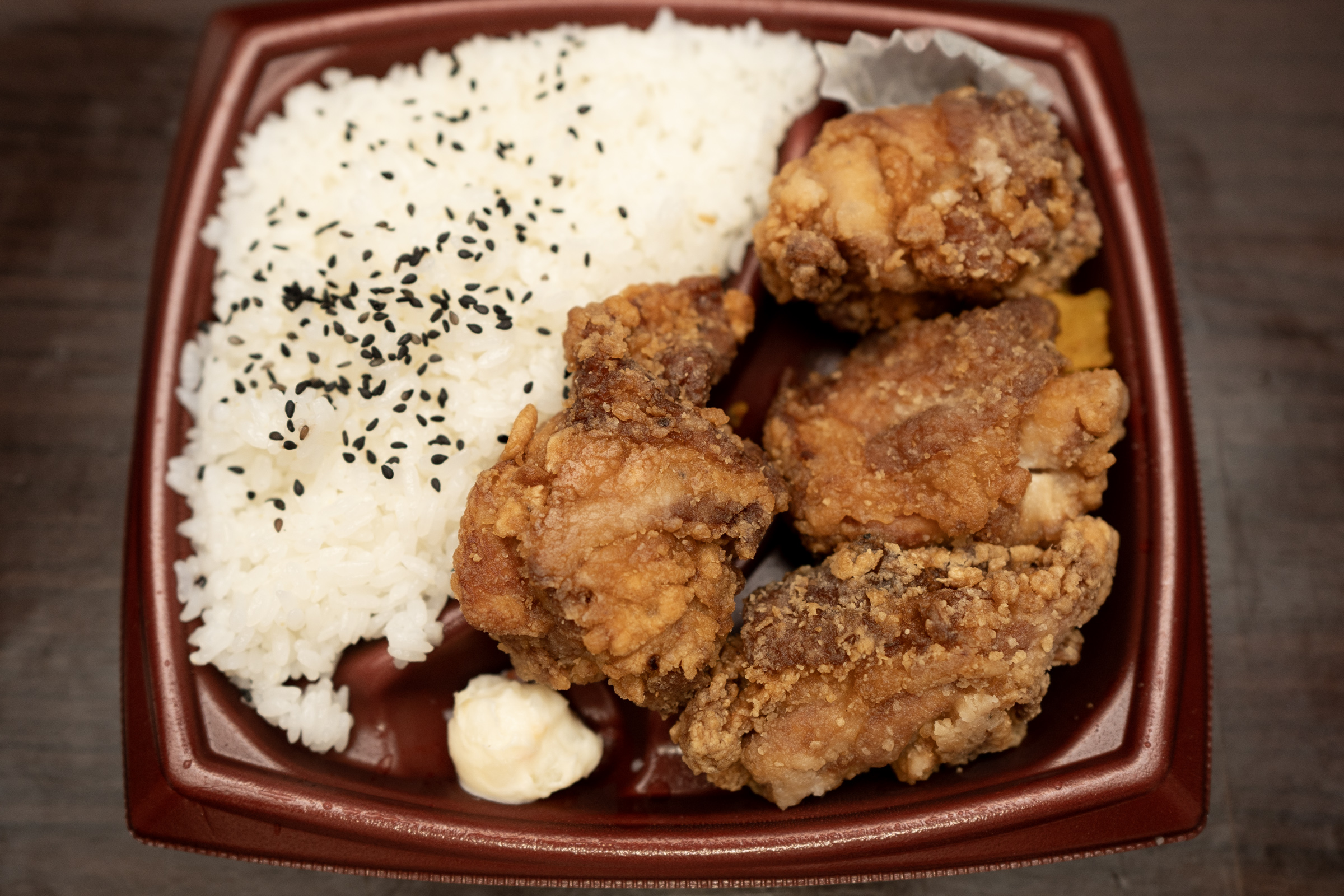 大きい唐揚げが4つ入っており、ライスの量も程よく、腹を満たすための弁当という枠ではNo.1だと思います。