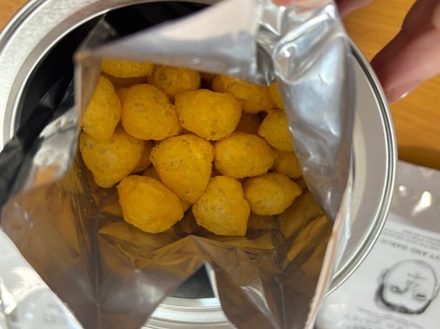 どんなものかと開封してみると、小さい「カール」みたいなスナックが入っていた。