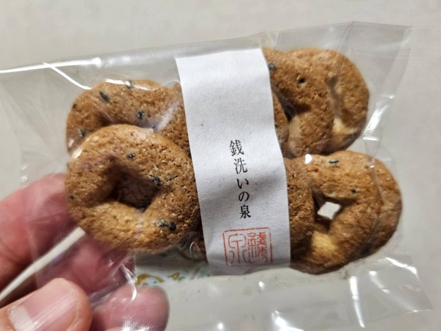 まずは、「銭洗いの泉」と書かれたビスケット。