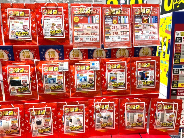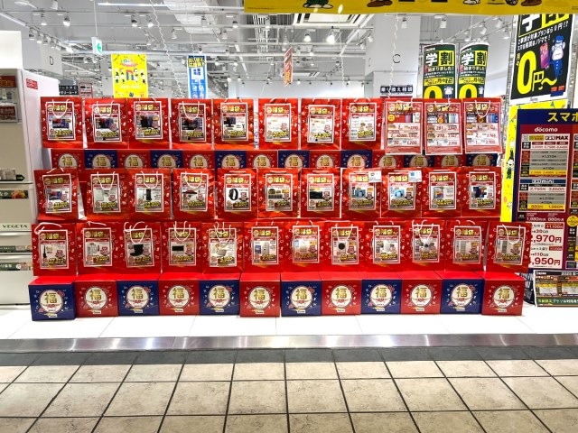 元旦の朝、私は近所のノジマに足を運んだ。店舗に到着すると、赤色の華やかな福袋が目に飛び込んでくる。