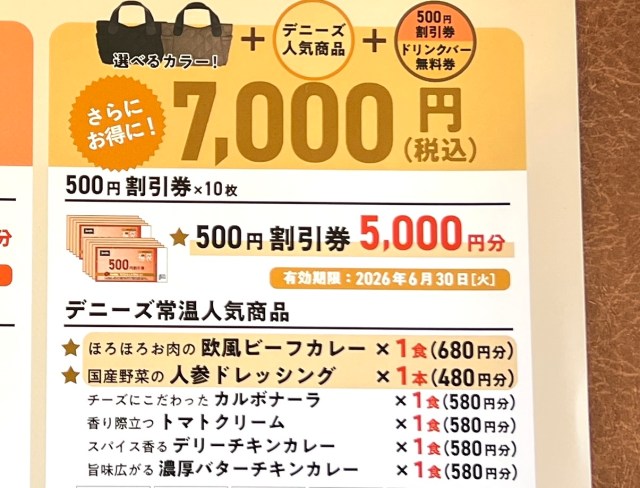 ▼相変わらずデニーズの福袋は、お得度が高い!