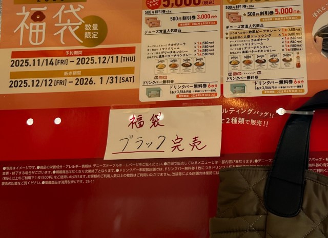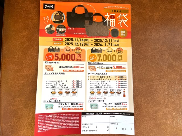 そんなデニーズから『2026福袋』の予約がスタートしたというニュースを聞きつけ、今年も絶対に手に入れねば……と意気込んで店舗へ向かった。予約に訪れたのは2025年11月22日のこと。果たして今年の福袋は昨年を超えられるのか?