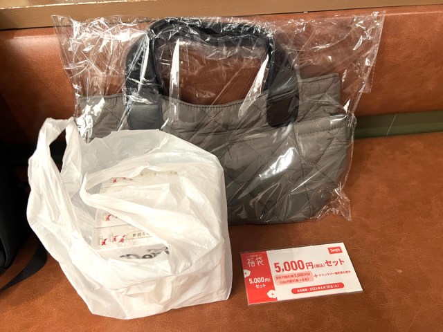 そして迎えた引取日。店舗で福袋を受け取ったのだが、ここで昨年との違いに気づいた。昨年はデニーズのロゴが入った袋にすべてがまとめて入っていたのに対し、今年はバッグとレトルト食品がバラバラの状態で渡されたのだ。
