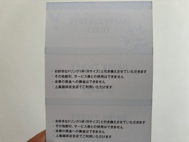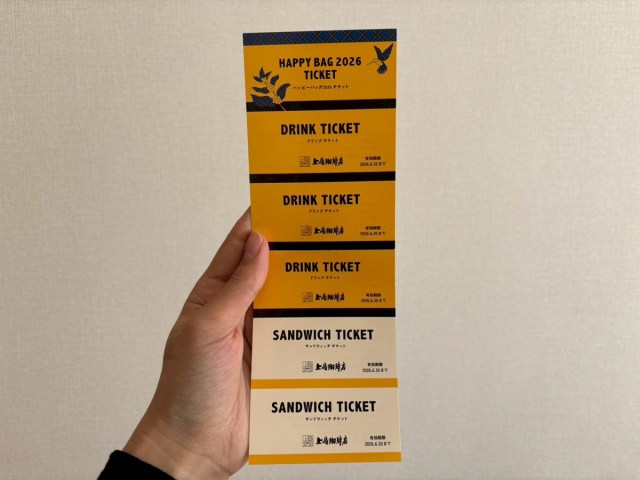 そしてドリンクチケット3枚にサンドウィッチチケット2枚も付いている。コーヒーチケットはよく聞くが、サンドウィッチチケットまで付いてくるのは珍しい。
