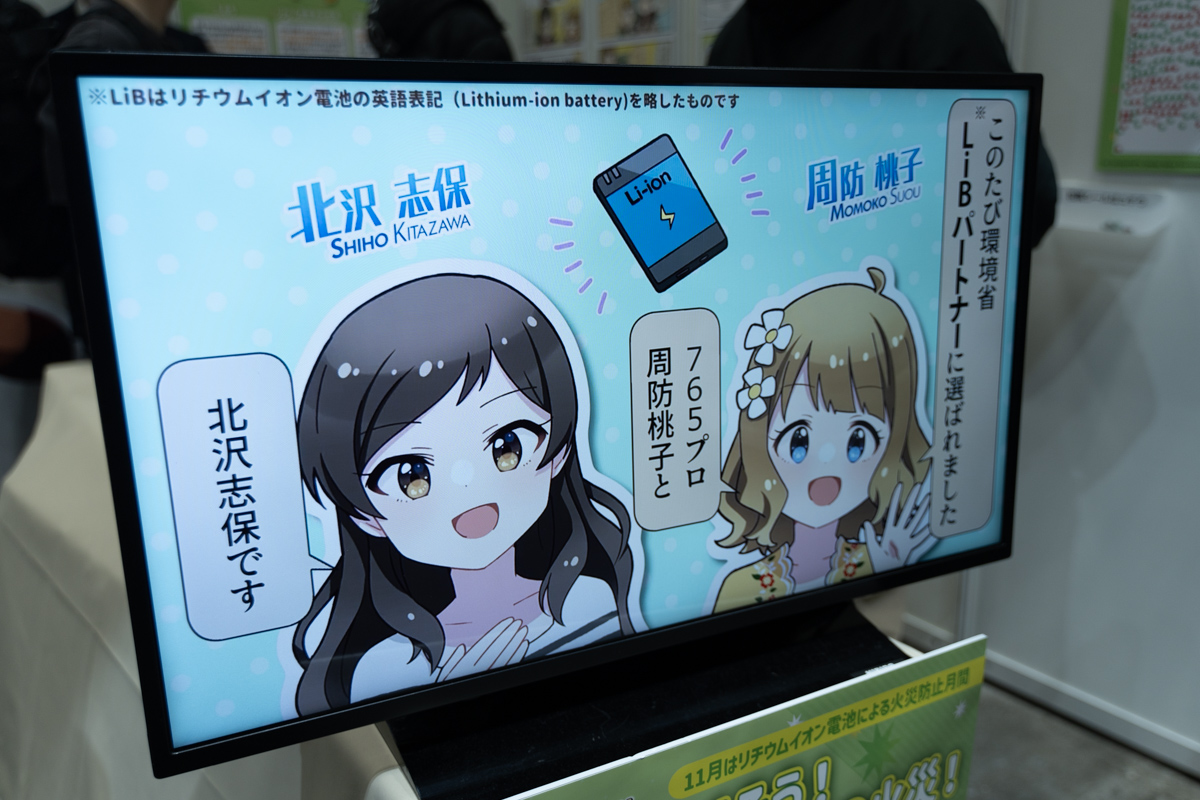 ブースには「なくそう!リチウムイオン電池の火災!」とあります。事前情報でリチウムイオン電池の取り扱いに関する啓蒙活動をすることは発表されていたので、おおむね予想通り。