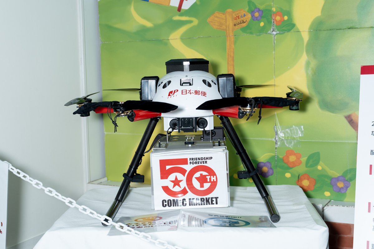 これは日本郵便による、ドローンを用いた配達の実証実験で使われている実機だそう。