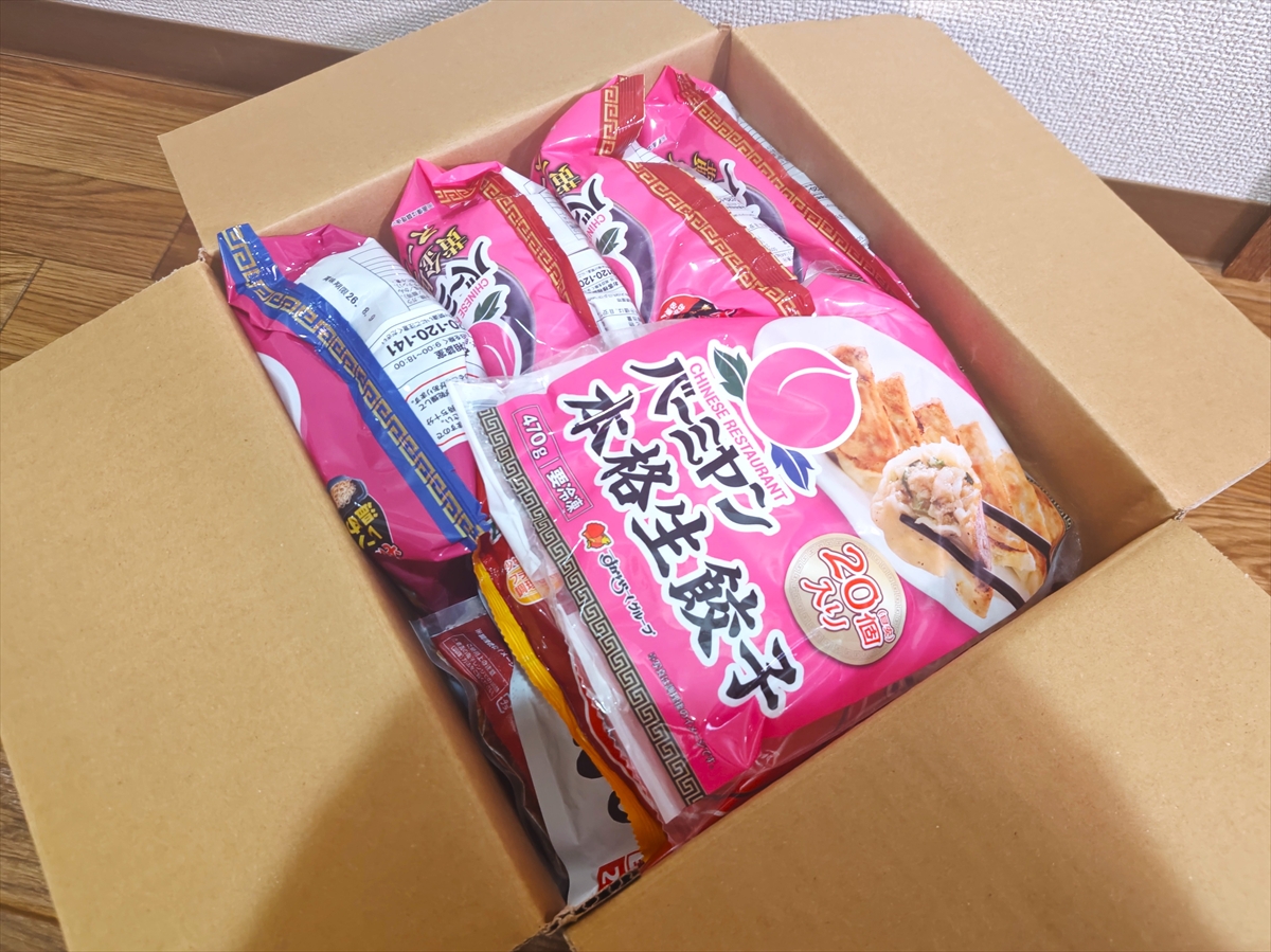 後日自宅に届いたのは、パンパンに冷凍食品が詰め込まれた段ボール箱。