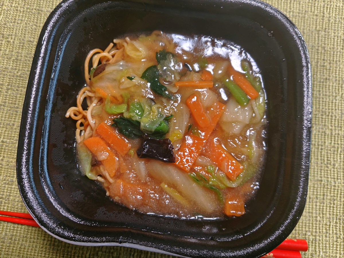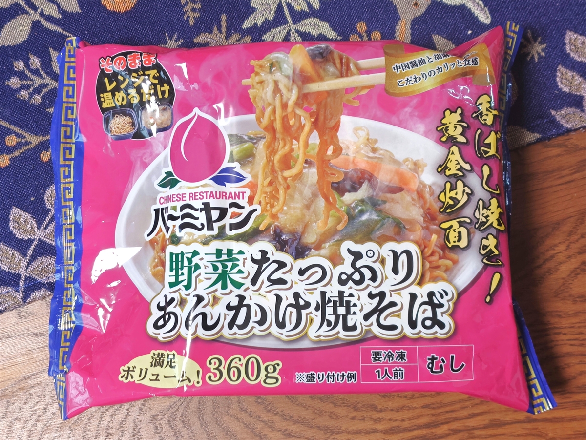 ▼年始の多忙な時期に、すぐに食べられる冷凍食品は有難い。あんかけ焼きそばは野菜たっぷり。しょうゆベースの味付けがオーソドックスで美味しい