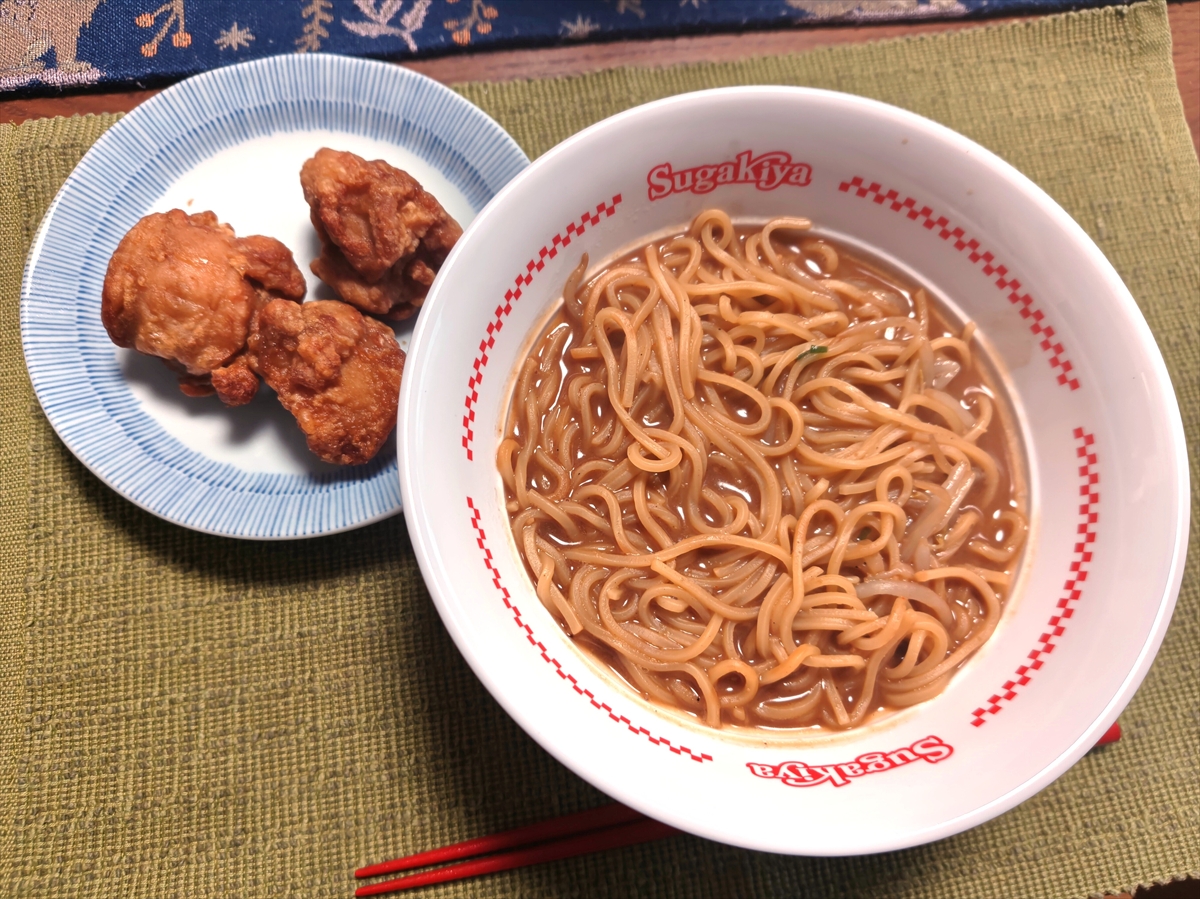 ▼黒マー油の味噌ラーメンとから揚げを合わせれば、気分はラーメン屋さんのから揚げ定食! 食べ応え抜群で大満足だ