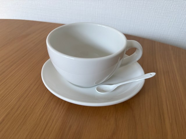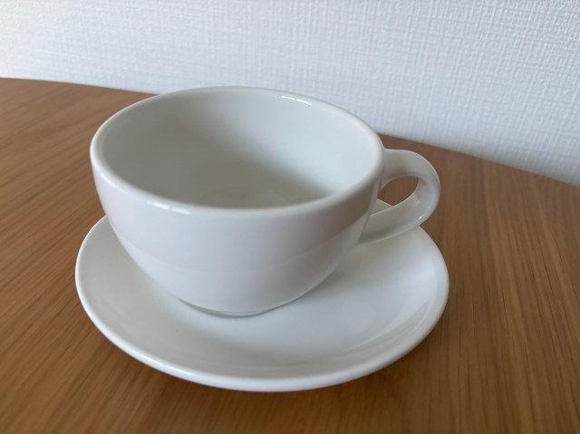 一見、何の変哲もなさそうに見える白いカップアンドソーサーは、KINTOというブランドとコラボしたもの。