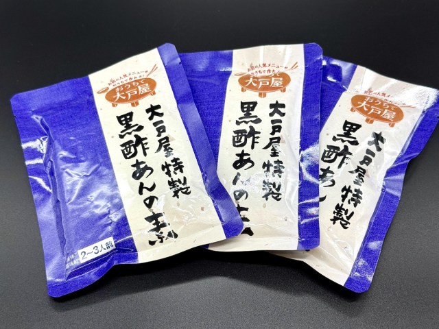 「大戸屋特製黒酢あんの素」は、材料と和えることで黒酢あん料理ができる時短調理アイテム。2~3人前×3袋のセットだ。