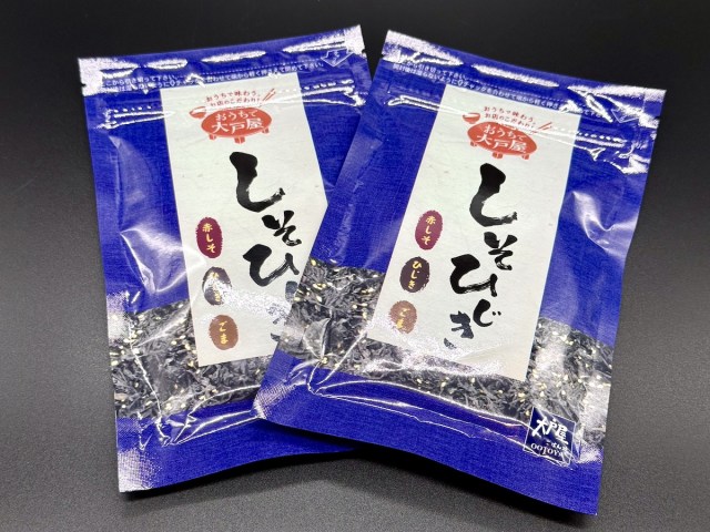 「しそひじき」はいわゆる「ふりかけ」だ。お弁当やおにぎりにもおすすめとのこと。2袋入っていた。