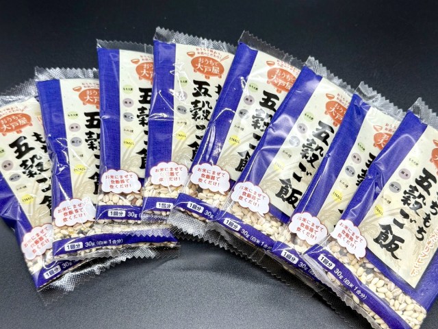 「もちもち五穀ご飯」は、混ぜて炊くだけで店舗の五穀ご飯を再現できるアイテム。白米から置き換えることで、ほとんどの栄養価が高く、カロリーは逆に低くなるというシロモノだ。