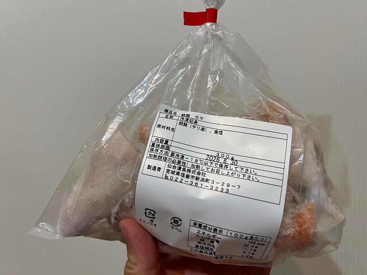 ただし、全ての商品が訳ありっぽくないかというと、そうではない。「銀鮭のカマ」に関しては可食部分が少なく、「これは訳ありだな〜」と思ったのが正直なところ。