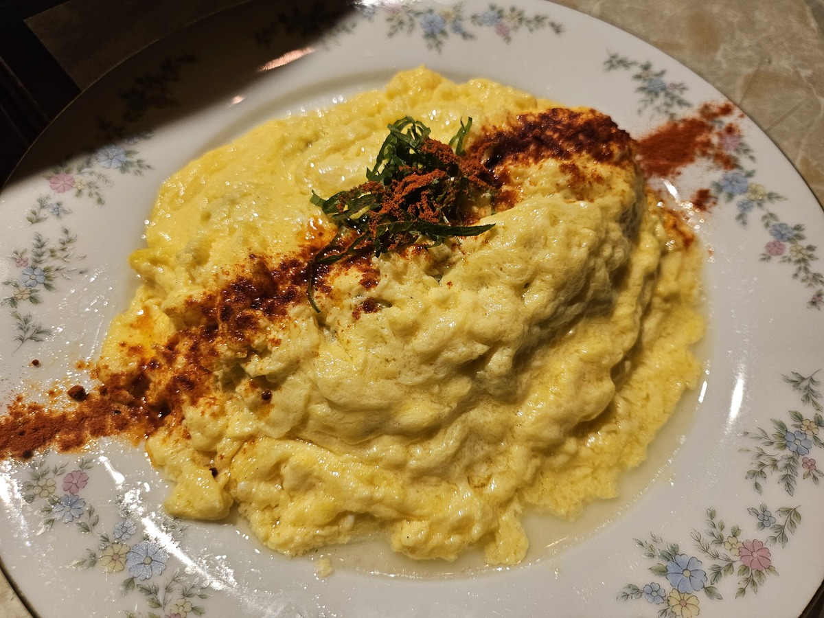 「あん肝ポン酢」は驚くほど柔らかく、「さばりがっこ」は酒のつまみとして申し分ない。どれもとにかく美味しかったのだが、中でもこの「オムライス【黒】」は衝撃的だった。