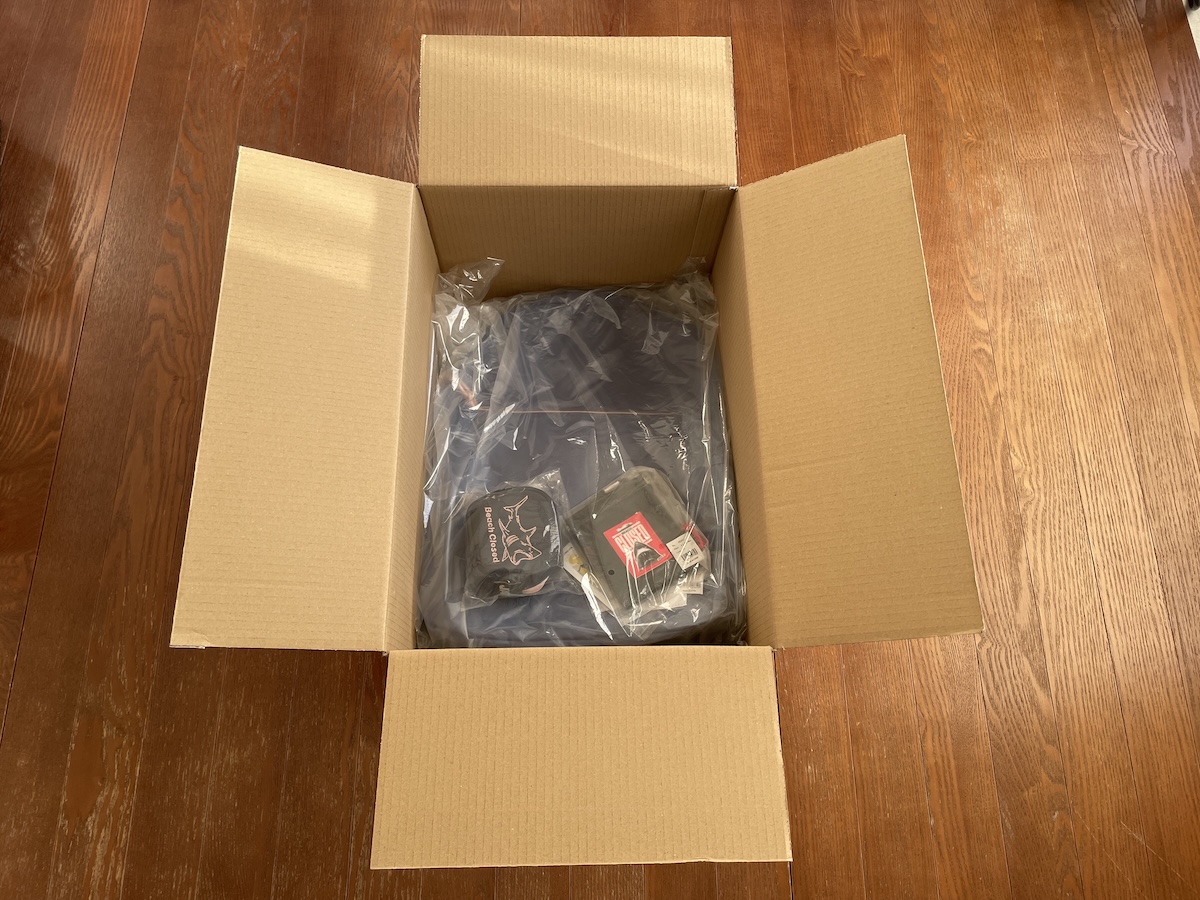 届いた梱包箱が思っていたよりも大きくてビックリ。なんだかグッズがたくさん入っていそうな予感〜。いざ開けてみると……