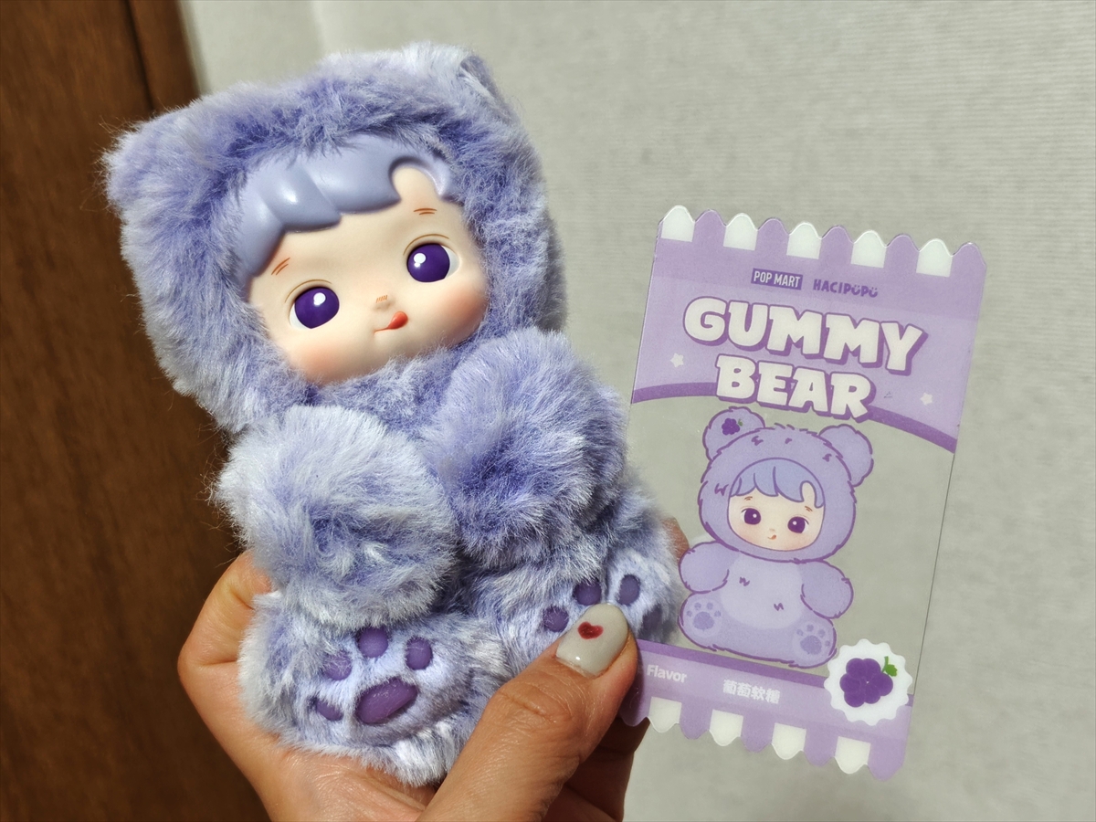 甘いぶどうの香りが付いていて、思わず抱きしめちゃいたくなるようなホワホワキュートなクマさん。ようこそ我が家へ!