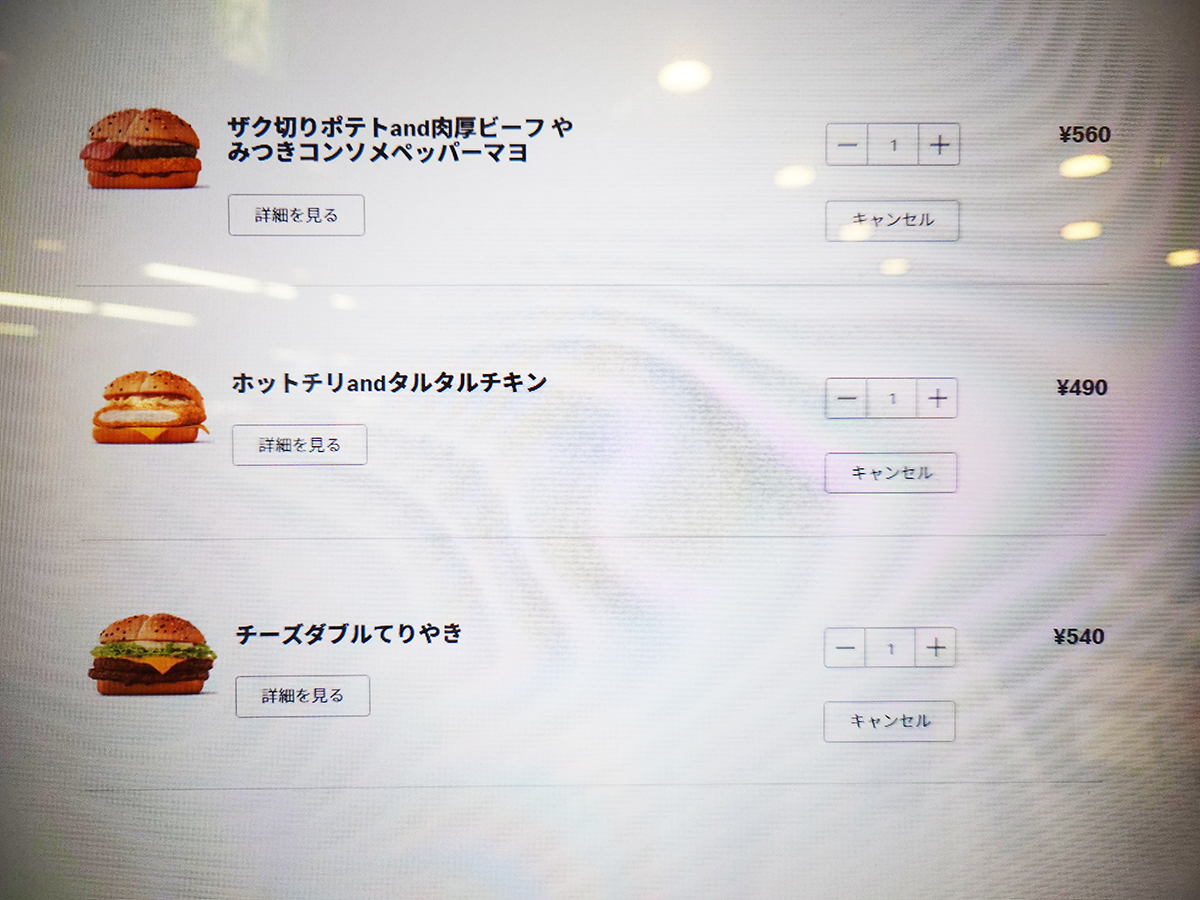 さっそく店舗へ。今回はバーガー3種を全て単品で購入。総額1590円だ。
