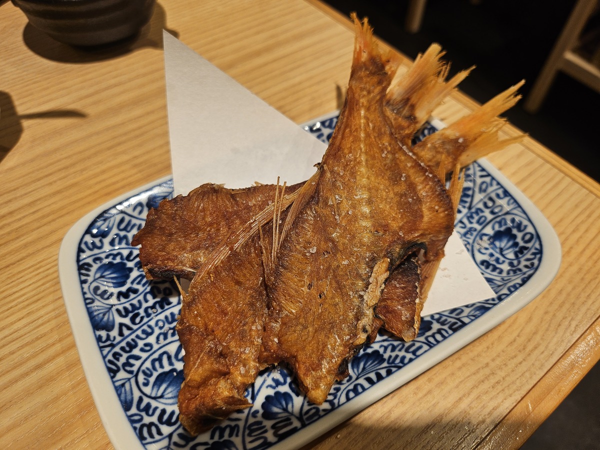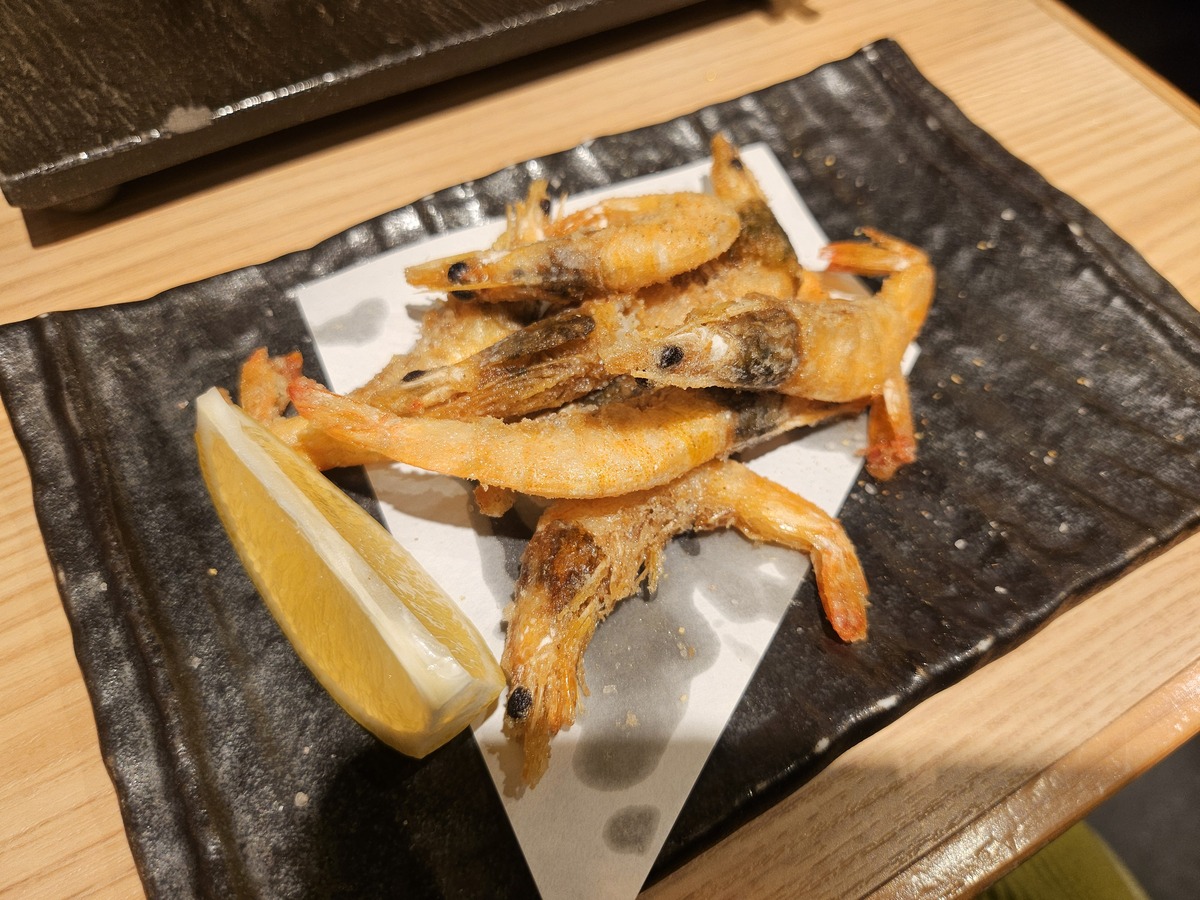 「芝海老の唐揚げ」は復刻商品とのこと。殻ごと食べられて、山椒の香りが効いた安定のうまさである。