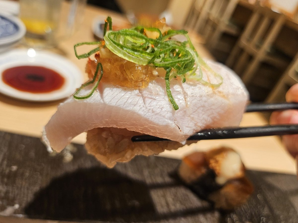 寿司ネタの約2倍サイズというインパクトに加え、炙り×鬼おろし×ジュレぽん酢という組み合わせがとにかく安定している。こんなんみんな好きだろってことで2位にランクイン。