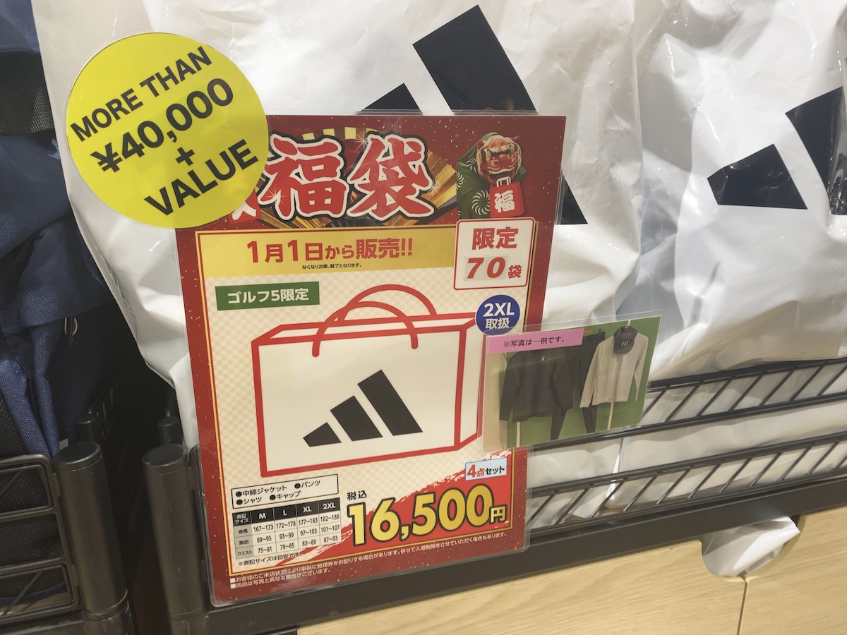 ゴルフ以外でも使えそうで、高機能なアディダスが全身揃うのは福袋ならでは。スポーツウェアとしても大いにアリだろう。