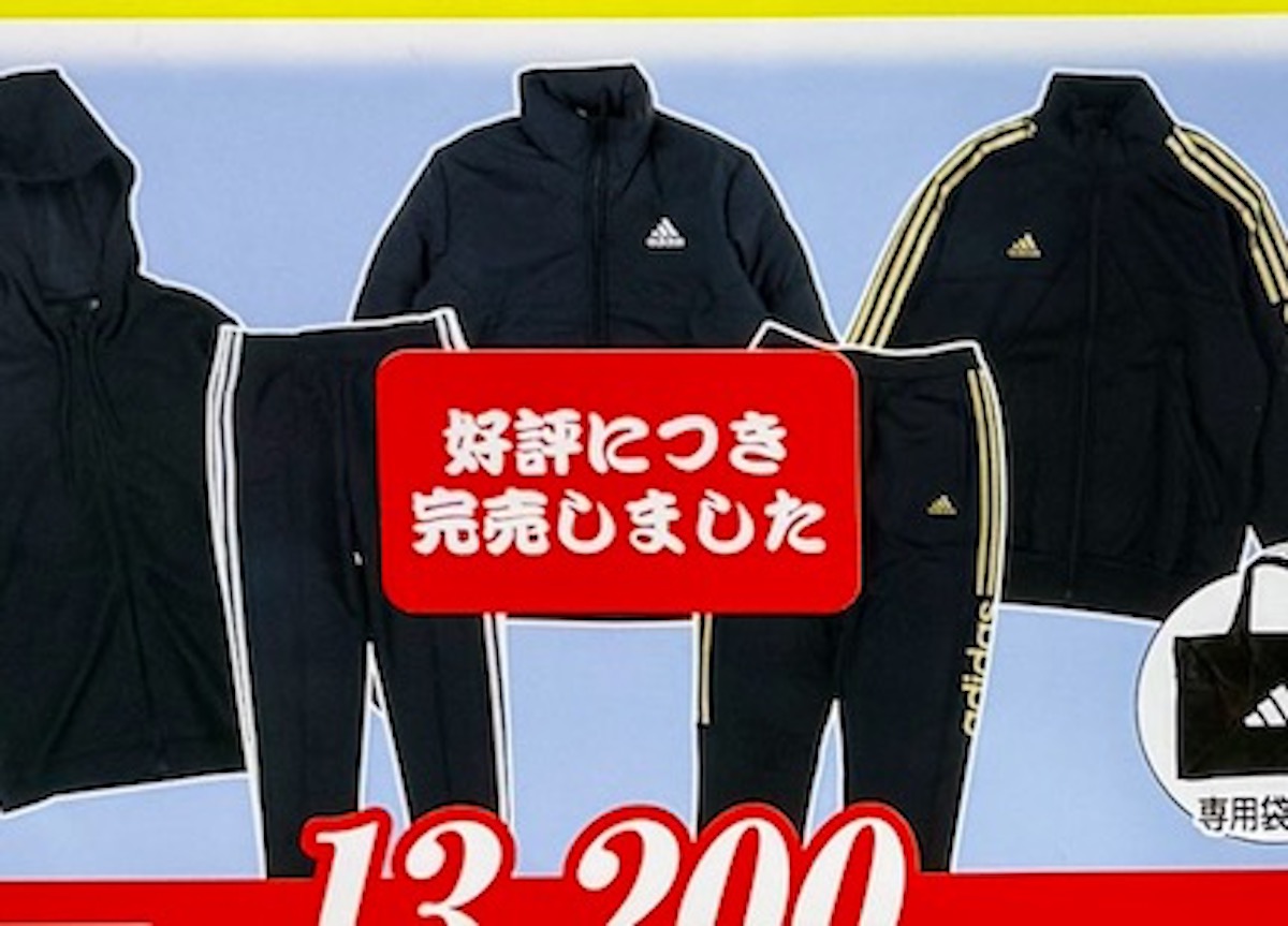他メーカーの福袋が絶賛販売中のなか、アディダスは昼の時点ですでになくなっていた。元旦から味わう絶望感ほどキツいものはない。