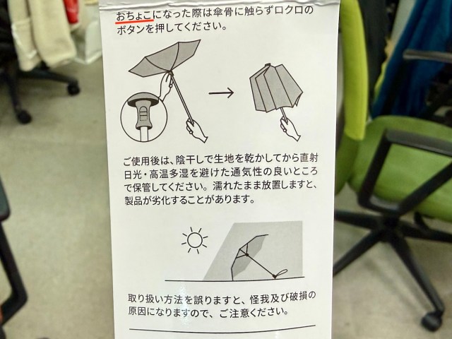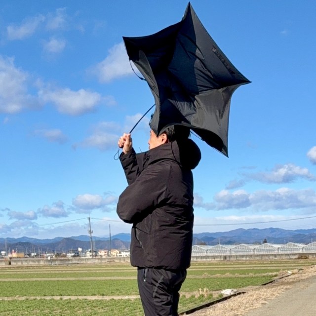 それともう1つ勉強になったことがある。説明書によると、強風で傘がひっくり返ることを……