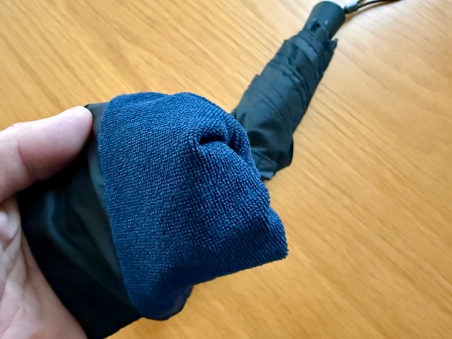 雑に畳んでもそれなりの形に収まってくれるうえに、傘袋の内側がタオル地のような素材で濡れた傘を入れても水分をある程度吸ってくれるのは有能だ。傘袋がビショビショになってカバンの中まで濡れるという悲劇は回避できる。