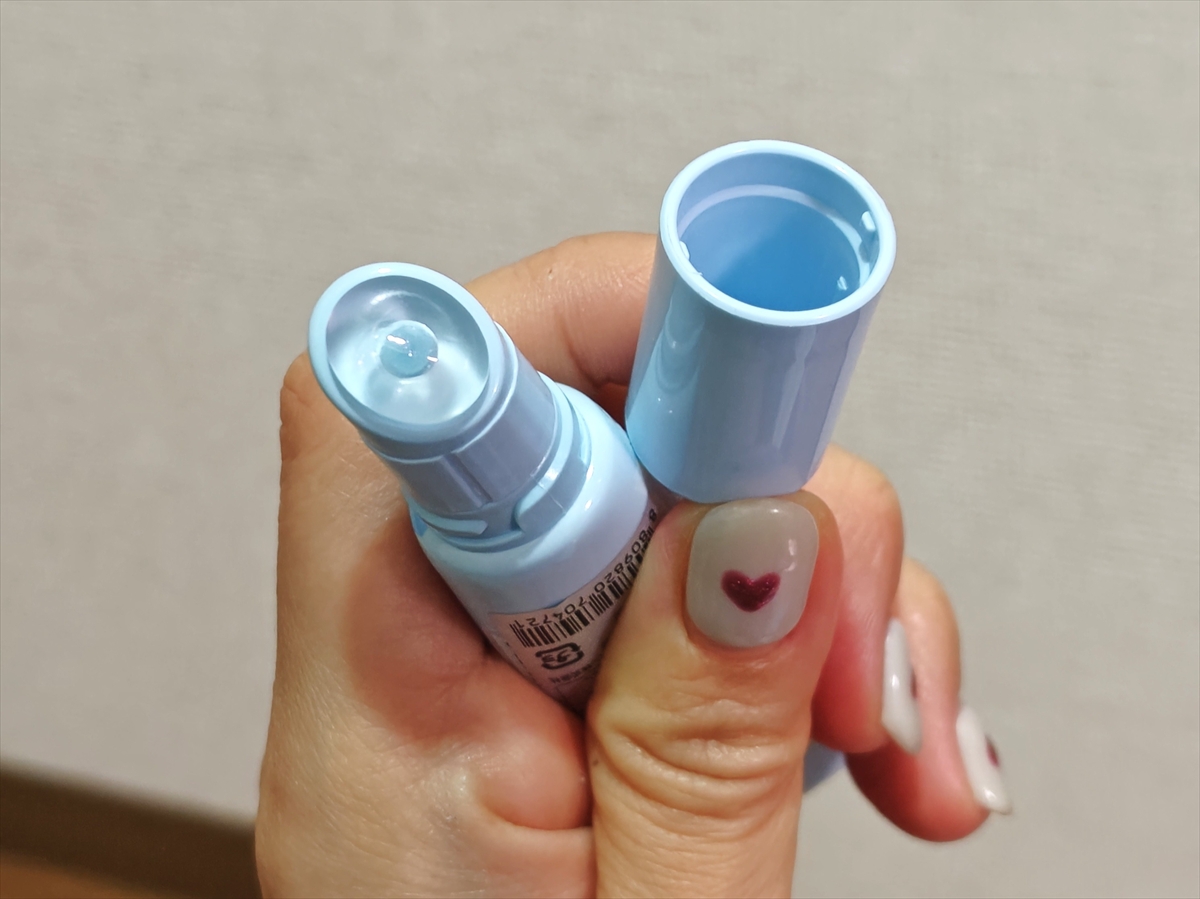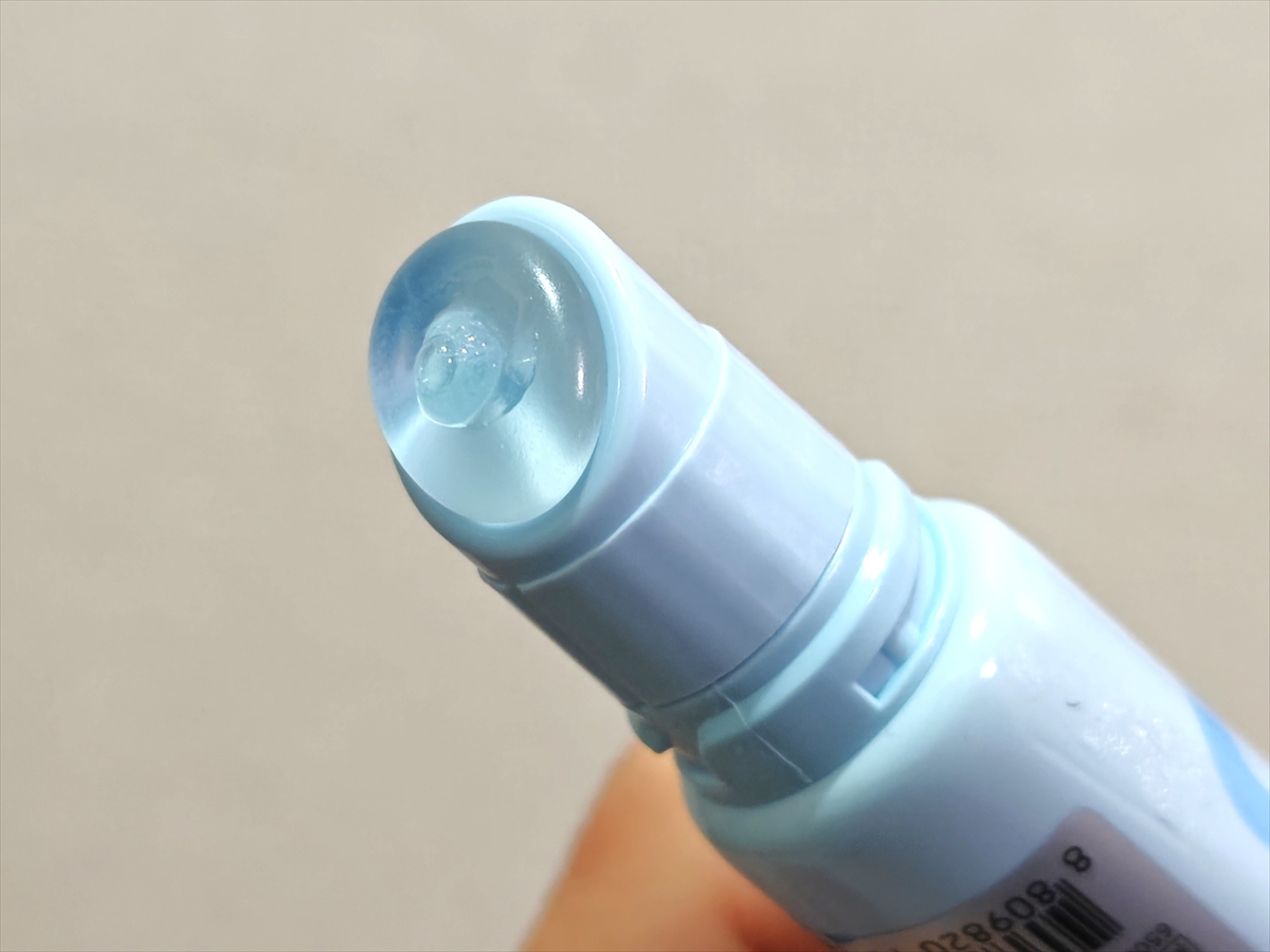 「薄い水色のプランパーなんて血色悪く見えそう」と思いながら塗ってみたところ、唇の上でピンク色に変化。ピリピリしてかなり刺激的だが、そのぶん唇はしっかりボリュームアップした。