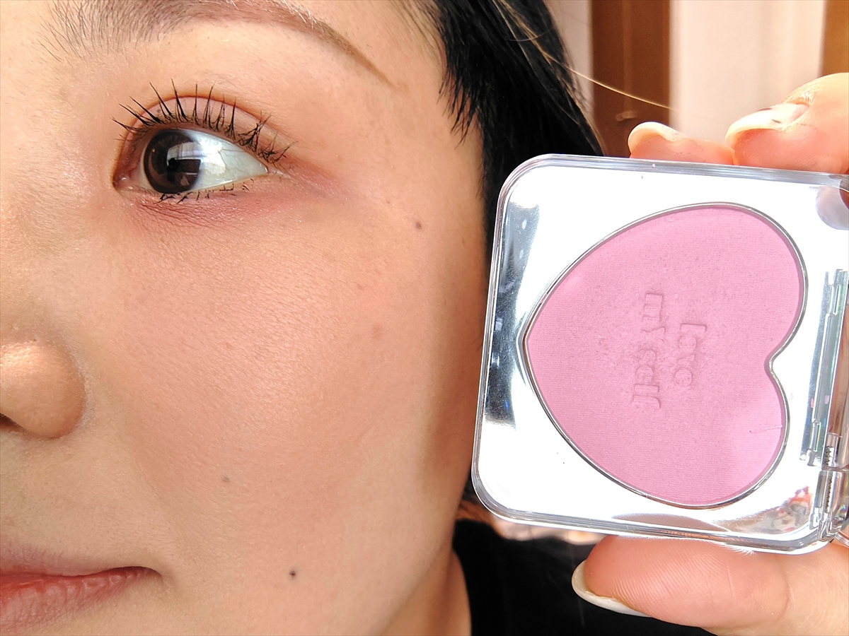 いちごミルク的なラブリーなカラーだが、実際に使ってみると意外にも控えめな発色。何度か重ねることで自然に色がつき、馴染ませることができた。