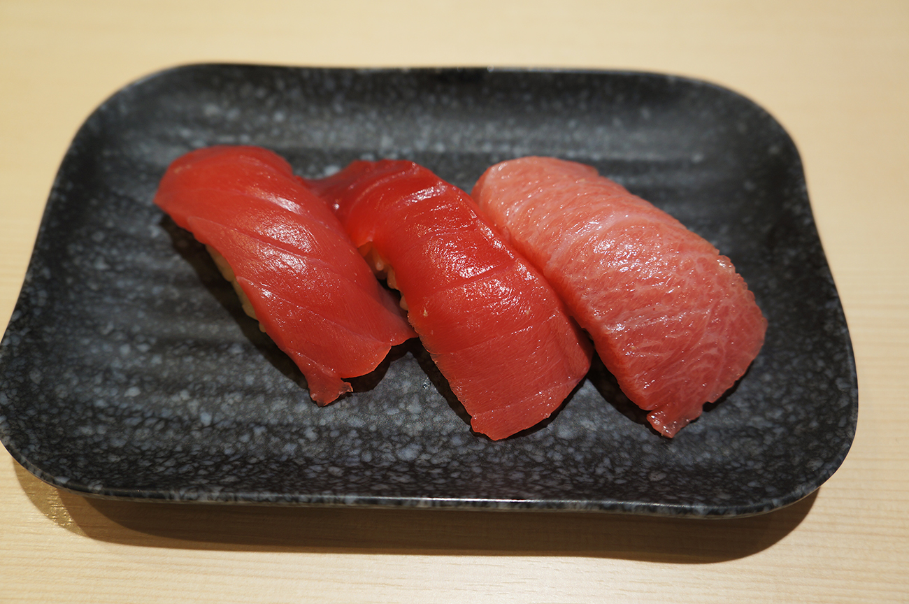なお、生本まぐろの「生」とは「1度も凍らせていない」という意味。寿司って基本刺身なのに、生がつくものとつかないものがあるのは、冷凍してるかどうかの違いで、生の方が旨みが濃くもっちりしているというのが定説である。要は「生本まぐろ」っていうのはマグロへのこだわりが垣間見える表記なわけだ。