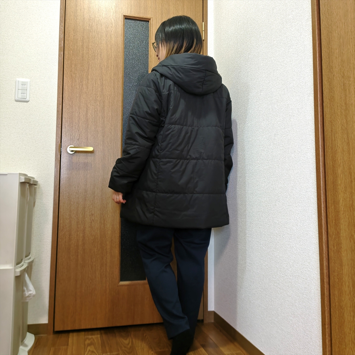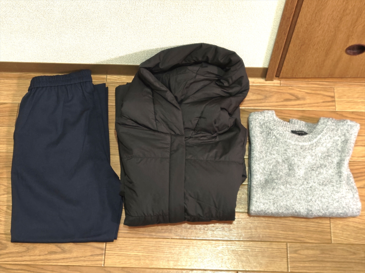 入っていたのは、真っ黒なテーパードパンツ・真っ黒な中綿コート・グレーのニットの3点。