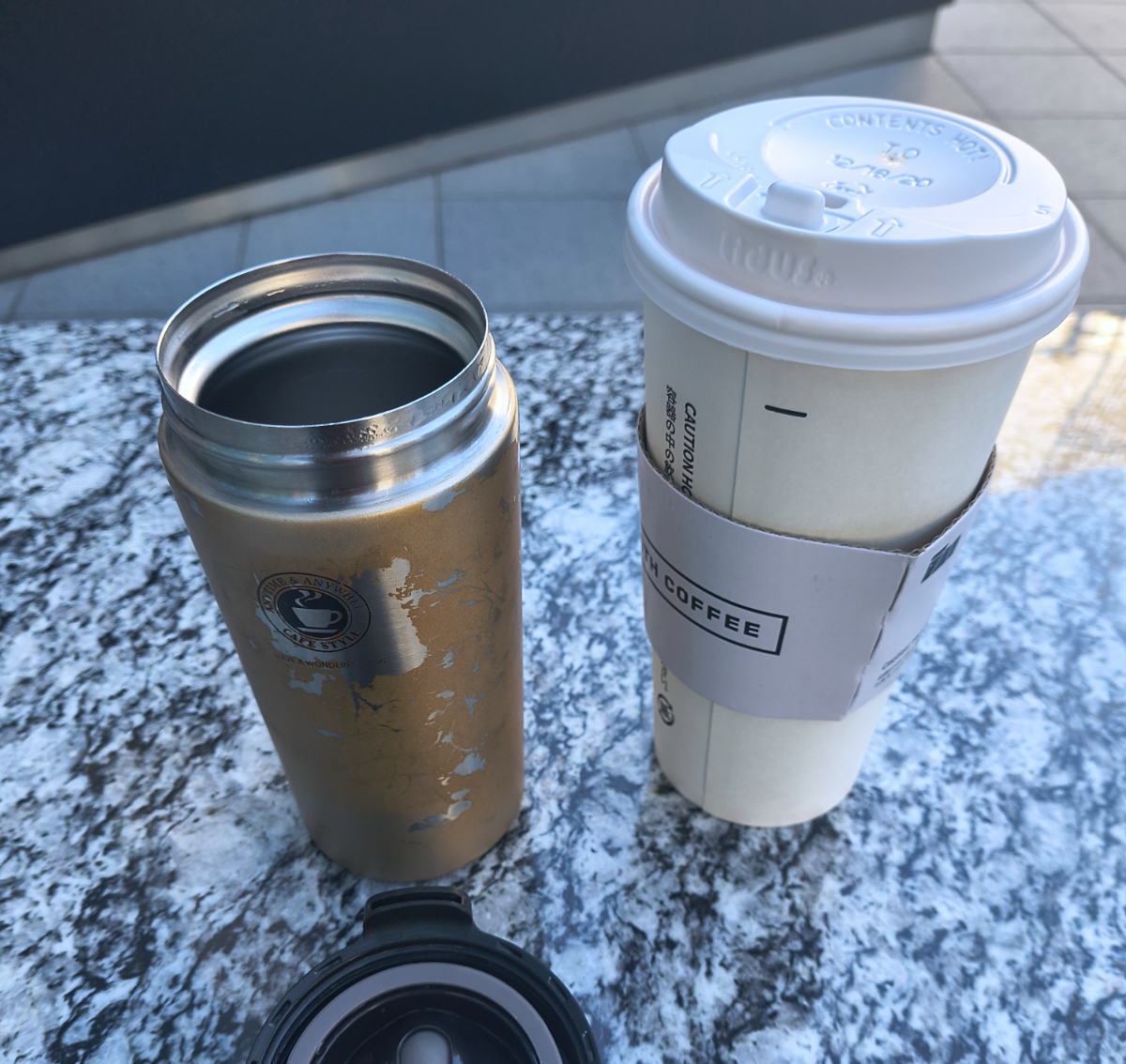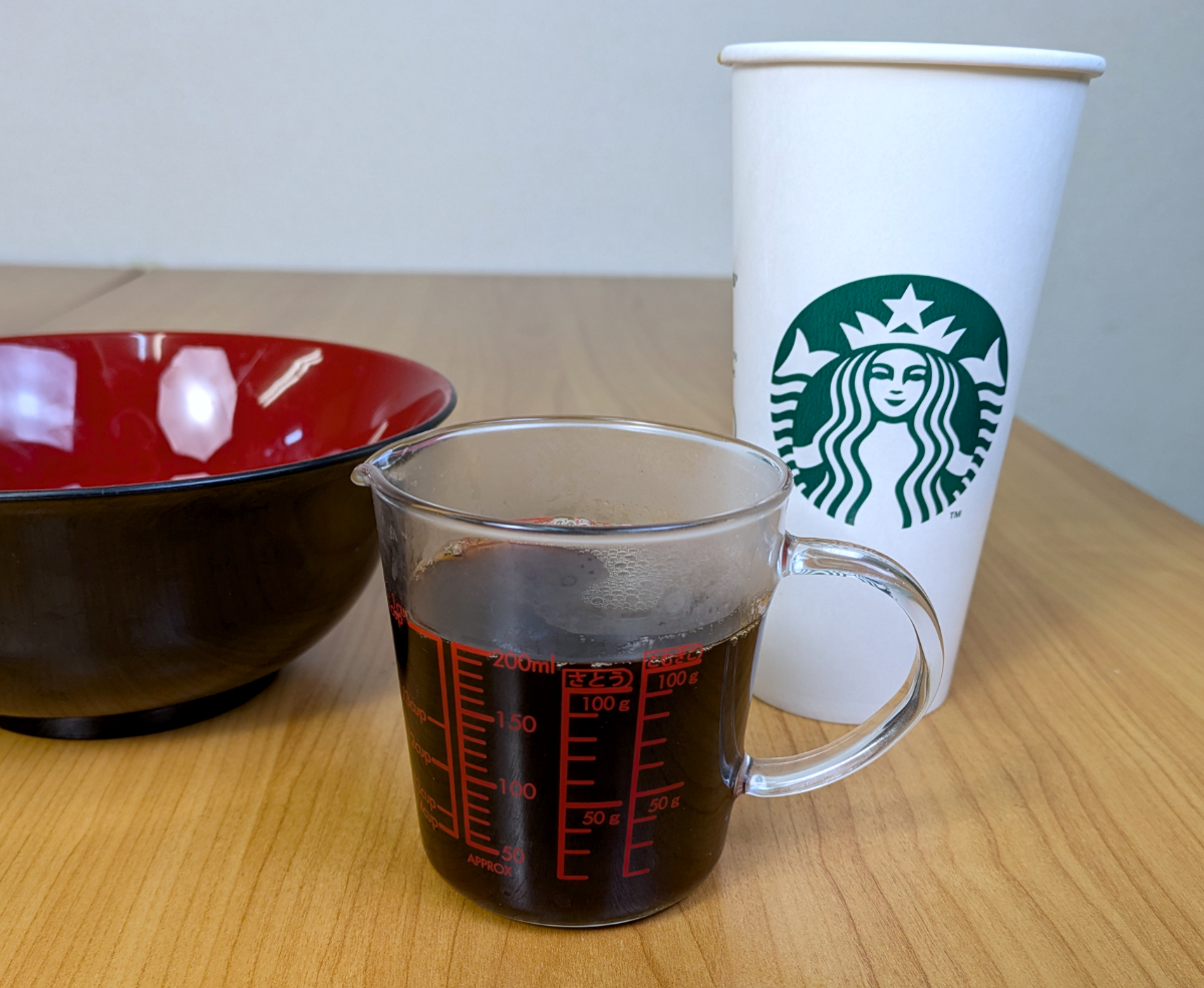 だが、本当に安いかどうかは計量してみないとわからない。そこで改めて2店に行き、アメリカーノの最大サイズをそれぞれで購入することにした。