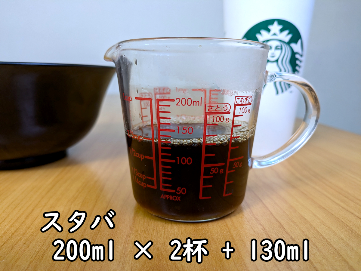 するとスタバは「200ml × 2杯 + 130ml」となった。