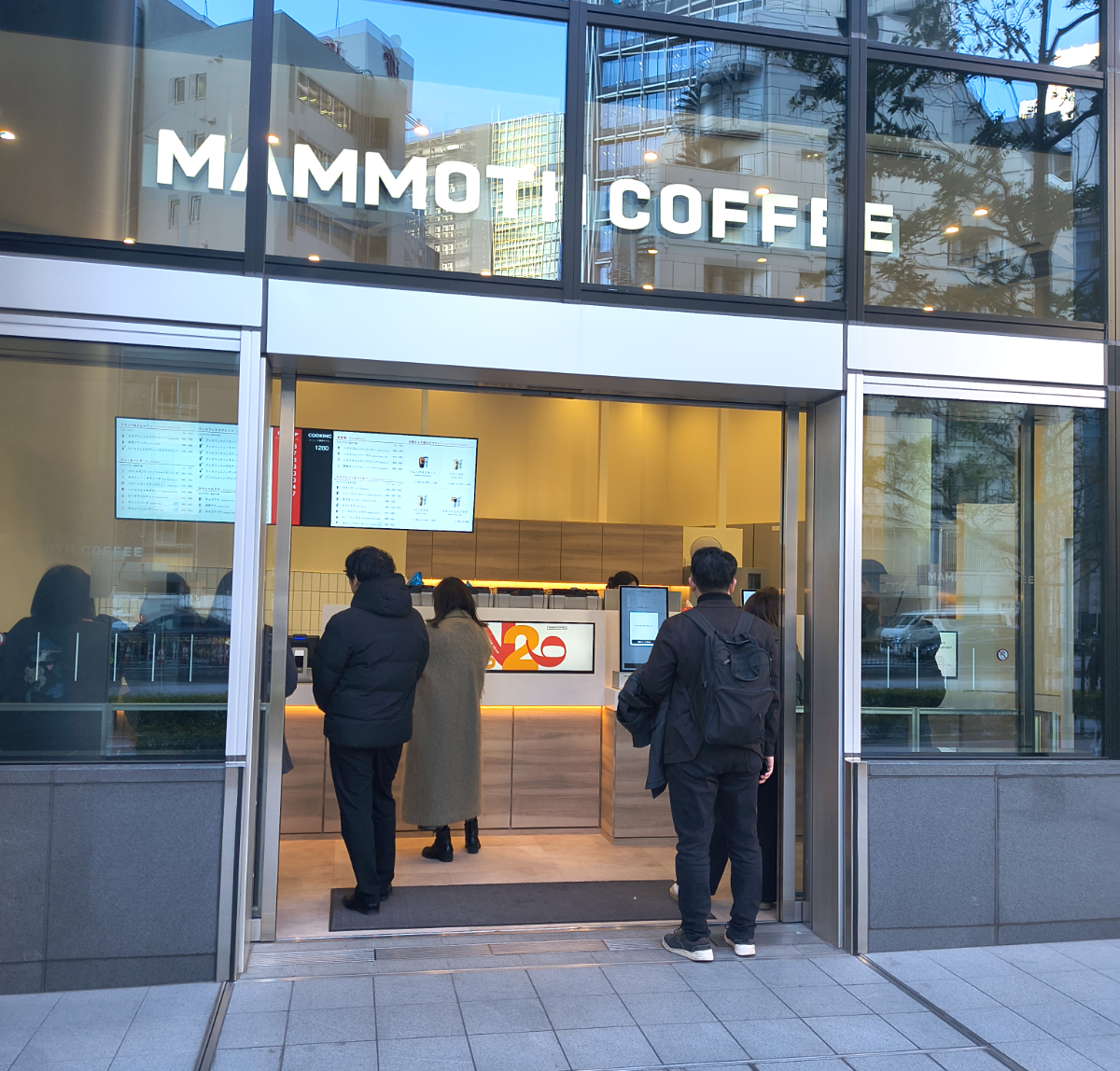 まずはマンモスコーヒーだが日本1号店の虎ノ門のお店に行くと、昼時に大行列! 開店から約1年を経ているが、人気店として定着しているようだ。