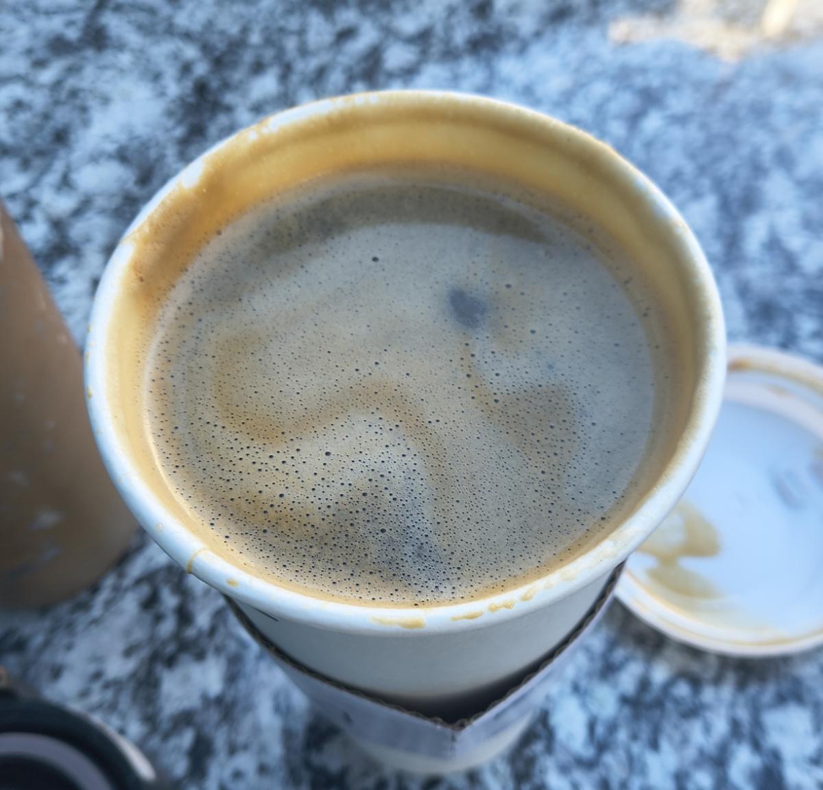 すでに先ほど店前でカップの中を覗いてみたが、やはりなみなみだ。多少水筒に入れ替えた影響で、少し目減りしているように見えるが、それでも量はかなり多い。