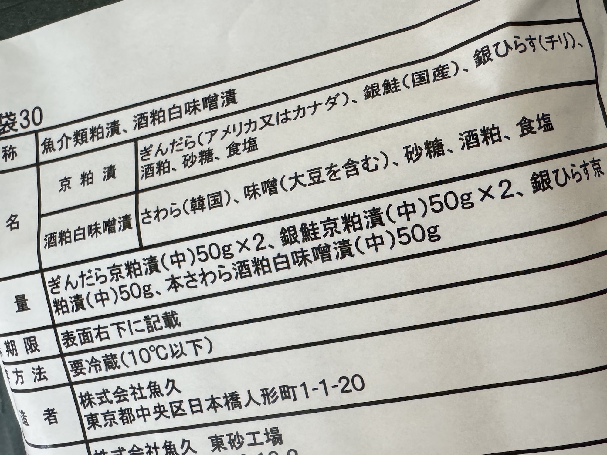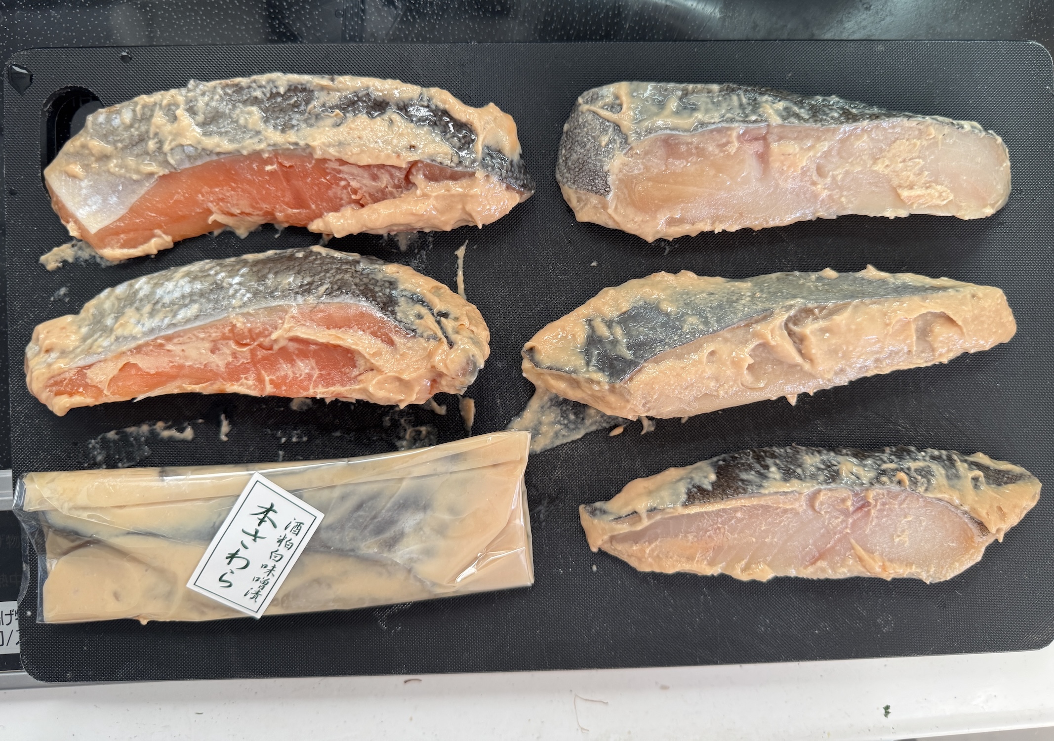 想像よりカオスな感じで、複数の切り身が1つのパックにまとめられている。粕漬けってこのスタイルが普通なのかな?