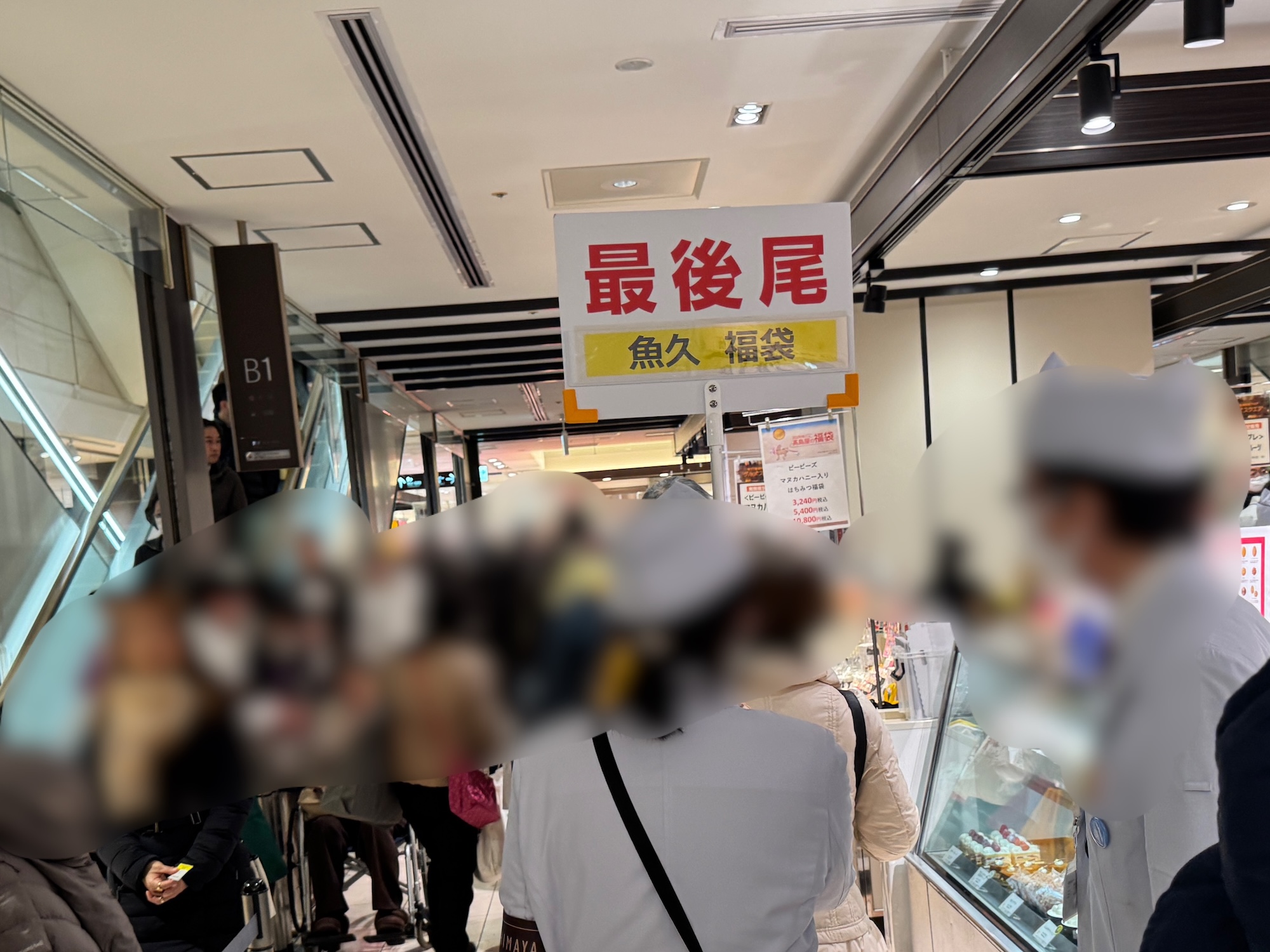 結果として私がここから1時間4分並ぶことになるのは、『魚久の福袋』の行列。