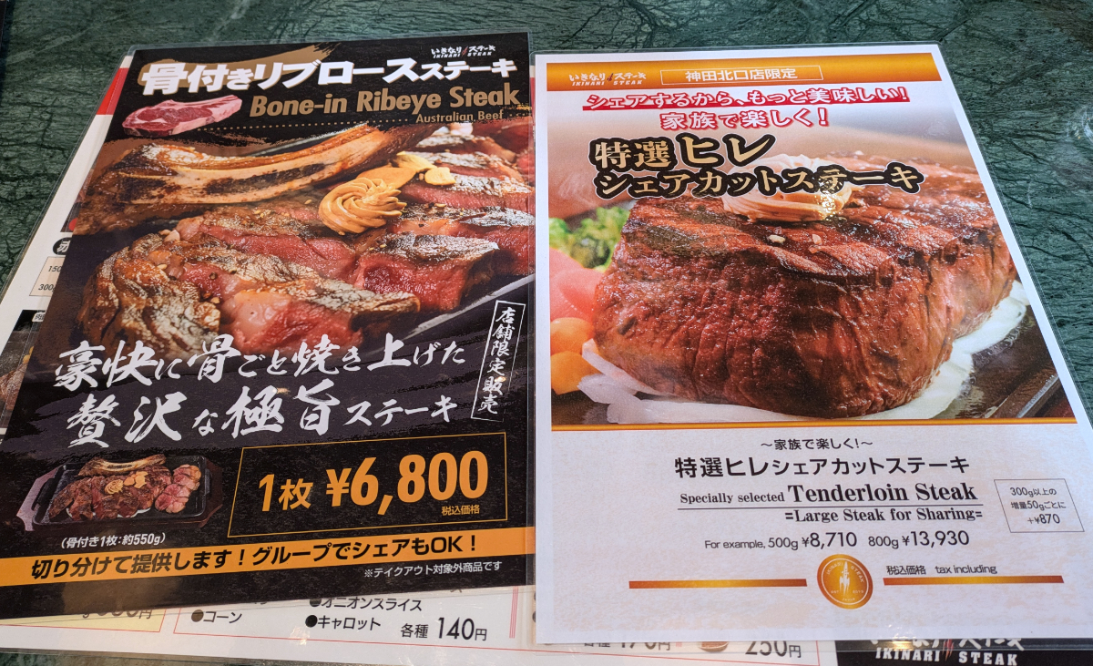 それでも一応、ここにしかないものもある。神田北口店限定の「特選ヒレシェアカットステーキ」500グラムで8710円! こんなの昼から頼めないよッ!