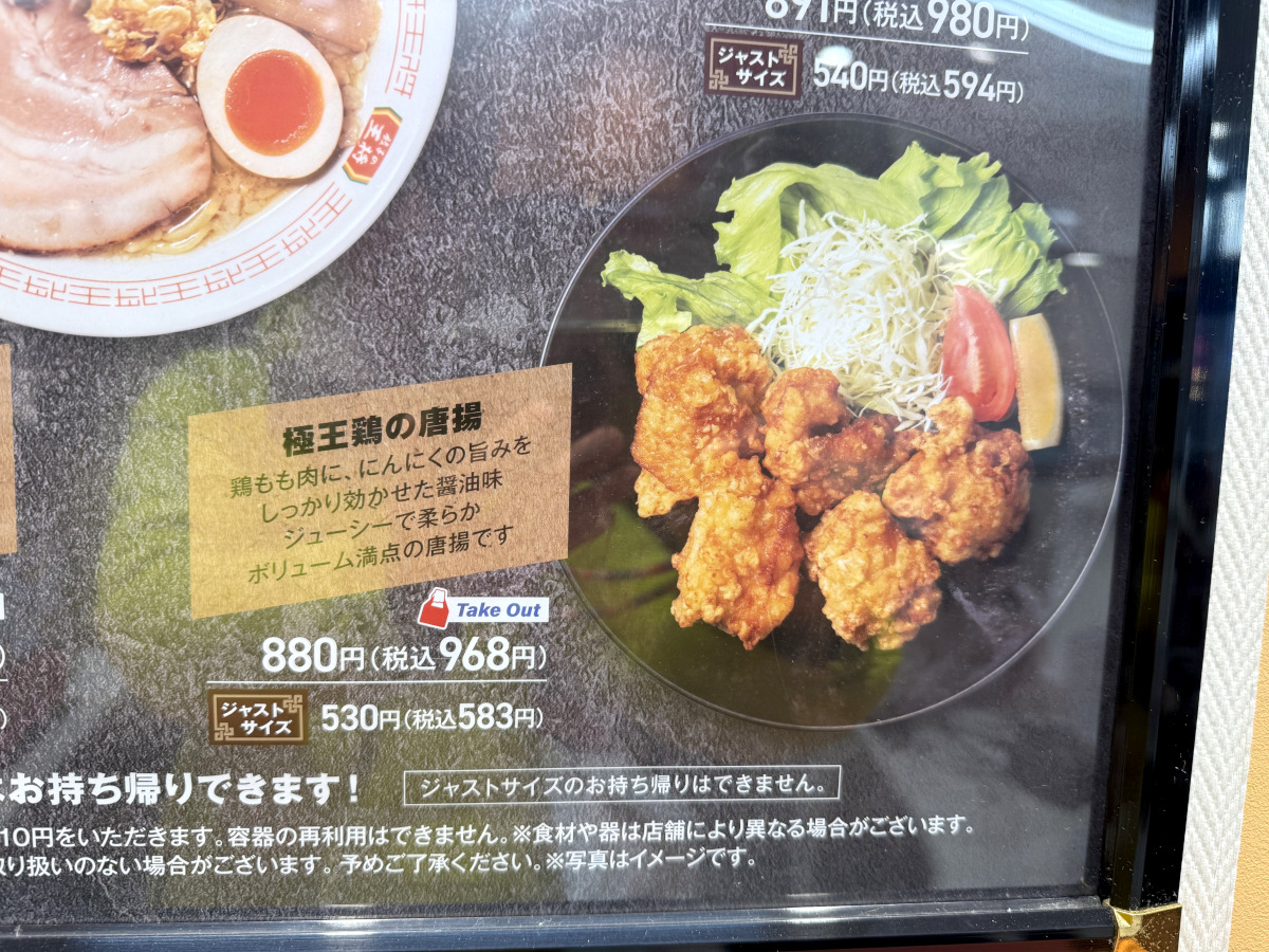 というわけで、餃子の王将『新極王7シリーズ』の「鶏の唐揚」については、素材とボリュームに明確な違いがあった。ジャストサイズは583円で販売されているので、わかりやすくやわらかジューシーな唐揚を召し上がりたい人はぜひどうぞ。