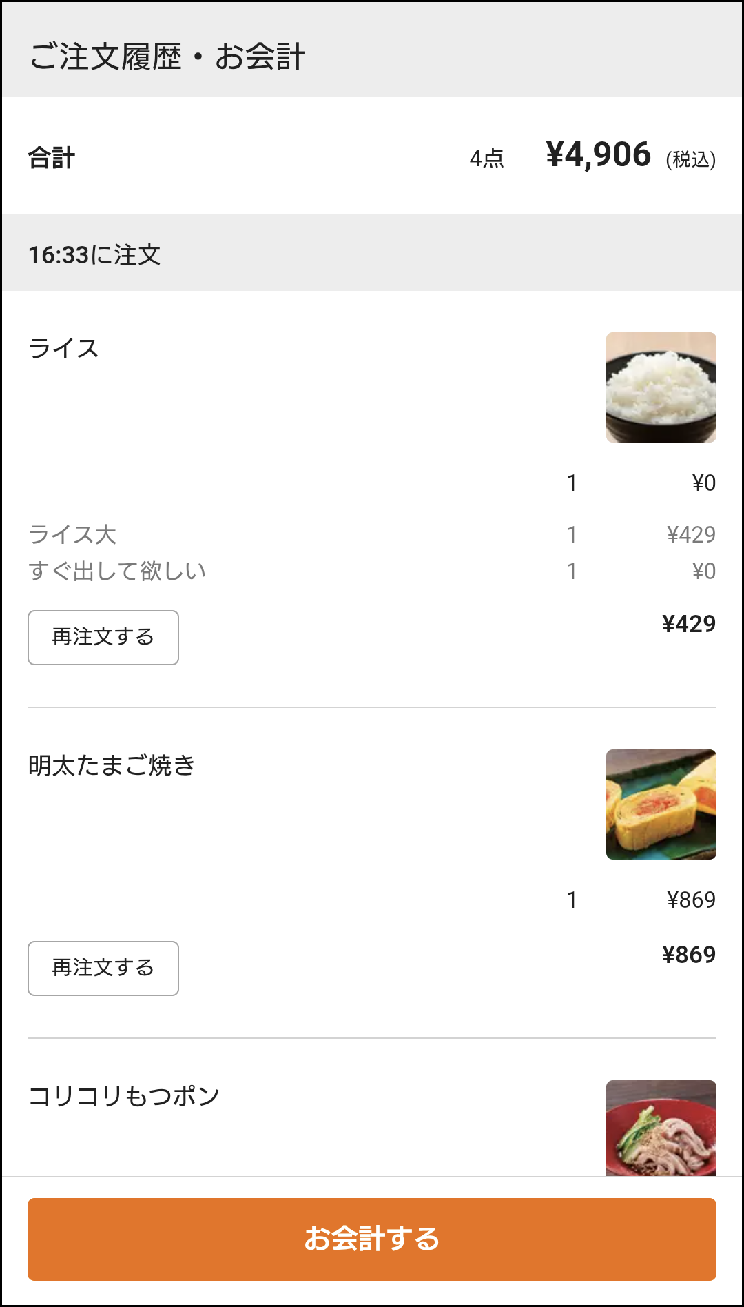 ▼全部で4906円。そこそこな金額だが、大食い気味の私でも限界量間近で危うかった。鍋とライスだけとか、鍋をサイズダウンして他に何か1品とかでちょうど良さそう。小食という自覚のある方は小盛(100g)でいいのではないかなと。