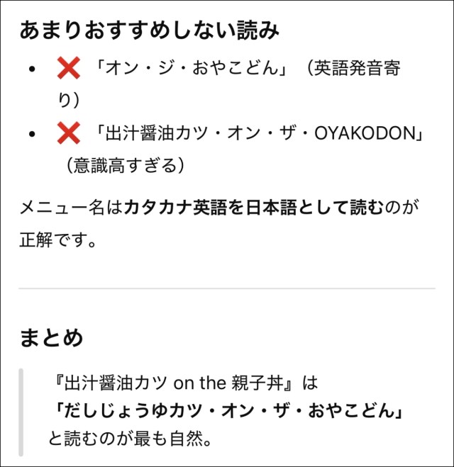 ▼『出汁醤油カツ・オン・ジ・親子丼』ではなく『出汁醤油カツ・オン・ザ・親子丼』が正解らしい。