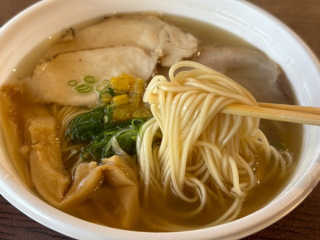 麺はストレートの細麺で、ぷりっとした食感。スープとの相性がよく、するすると箸が進む。