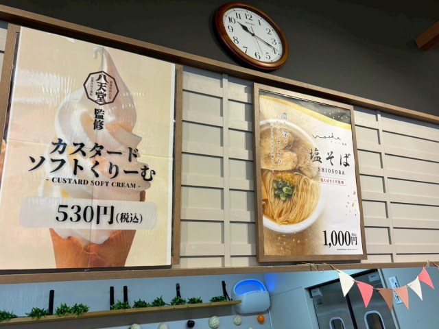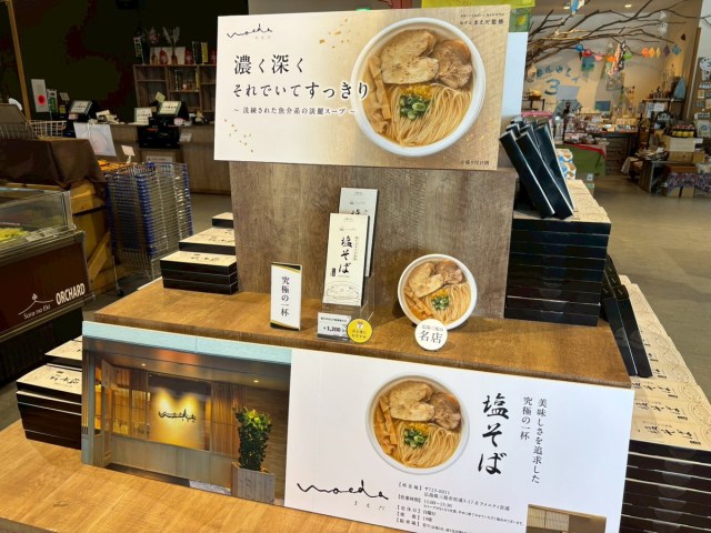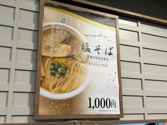 そんな中、フードコーナーで見つけたのが「塩そば」の文字。「塩そば まえだ」監修と記載されており、価格は1000円。