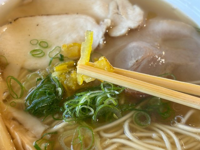 この柚子がいい仕事をしていて、濃いスープの後味を一気に爽やかにまとめてくれる。