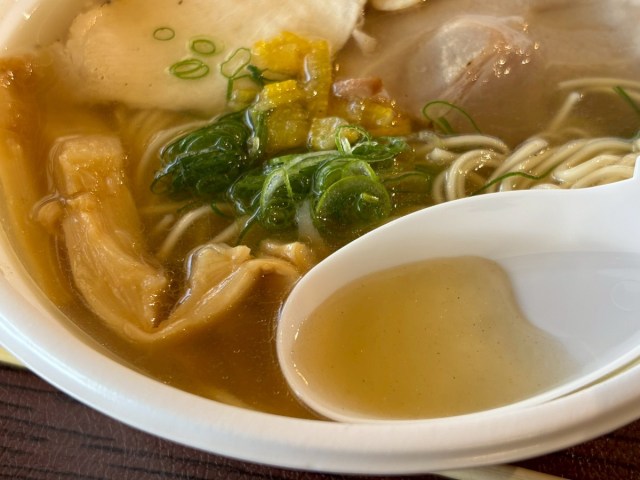 ひと口すすると、すっきりしているのに味はしっかり。くどさは一切なく、魚介の旨みがじわっと、いや、わりとしっかり押し寄せてくる。