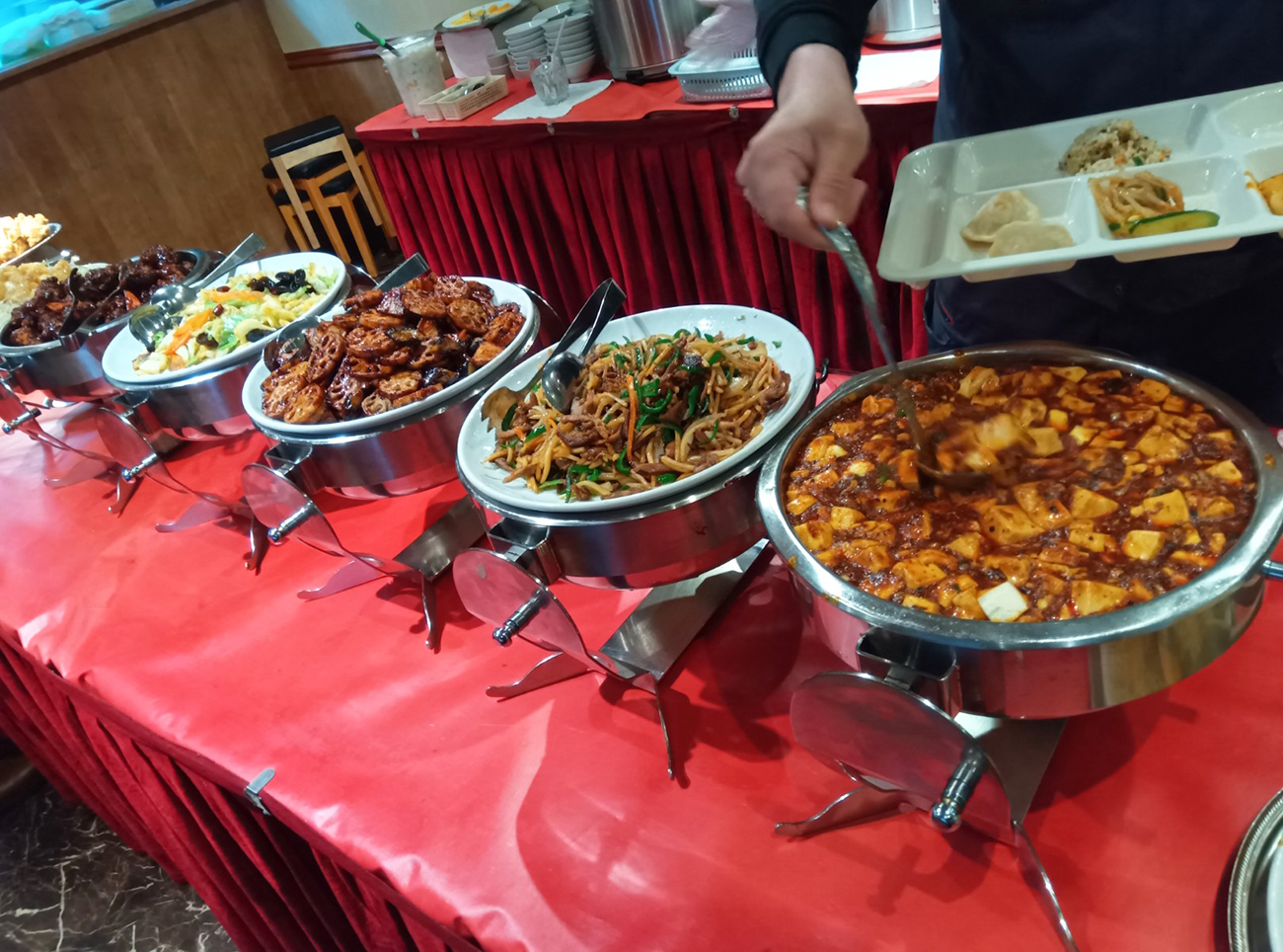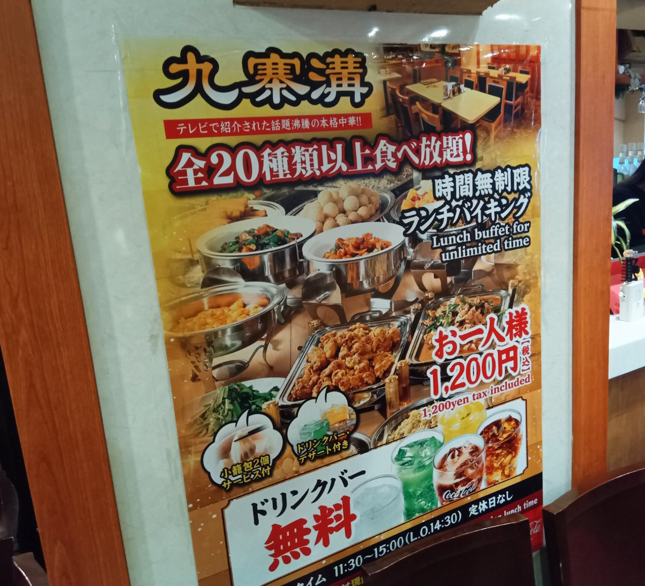 店員さんによると、ランチは中華料理20種以上が1200円で時間無制限の食べ放題をやっているらしい。1200円て! 時間無制限て!!